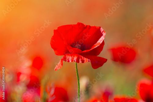 Fototapeta premium Poppy flower or papaver rhoeas poppy with the light