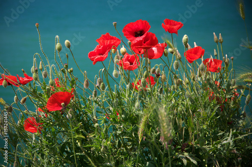 © Svetlana Lukienko, Obraz premium Poppy flowers against water