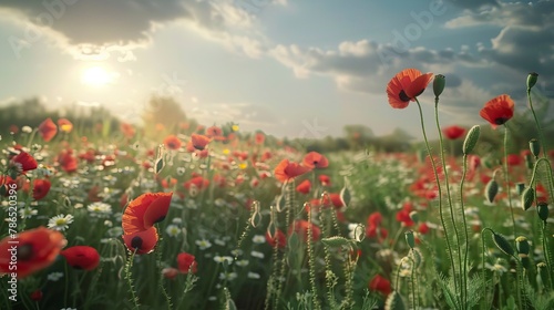 © CREATIVE STOCK, Naklejka premium poppy flowers in summer, In remember of military veteran and Happy memorial day Celebration