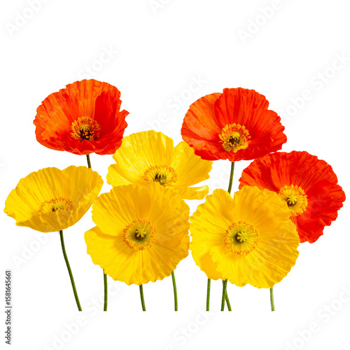 Obraz premium Poppy flowers isolated on transparent background, Red yellow poppy flower...