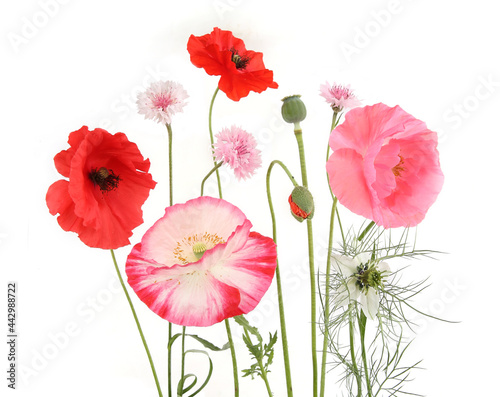 Obraz premium Poppy flowers isolated on white background. Studio shot of beautiful garden...