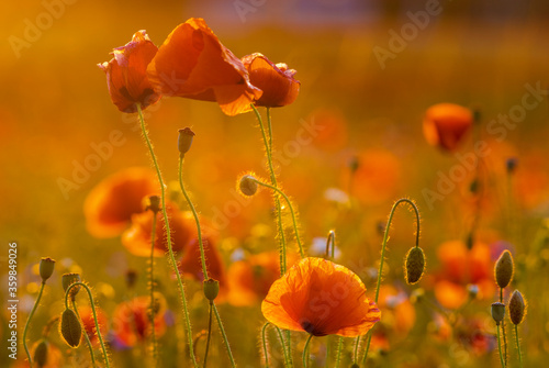 Obraz premium Poppy meadow in the light of the setting sun