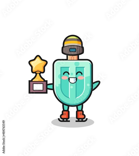 Obraz premium popsicles cartoon as an ice skating player hold winner trophy