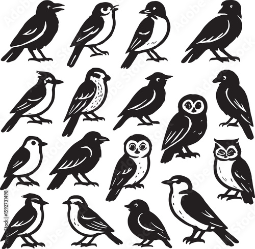 © VectorStock, Naklejka premium Popular Birds Line Art Vector Set – Clean Black on White Design"