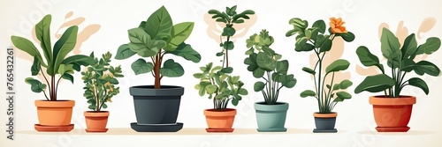 Fototapeta premium Popular Potted plants illustration on solid background, in pots -...