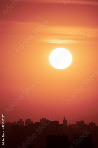 Obraz premium Por do Sol na cidade de São Paulo. Sol grande, fotografado em close up....