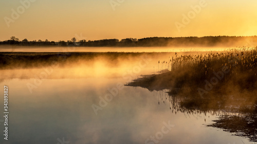 © podlaski49, Fototapeta premium Poranek w Dolinie Narwi. Rzeka Narew. Podlaskie wierzby, Polska