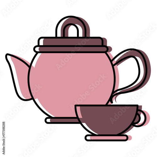Obraz premium Porcelain teapot and cup utensil icon vector illustration graphic design