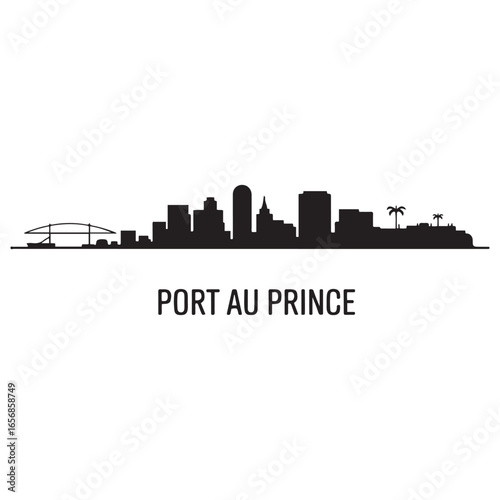 © Nargis, Obraz premium Port au Prince skyline silhouette. Vector illustration. Vector black silhouette. with white background