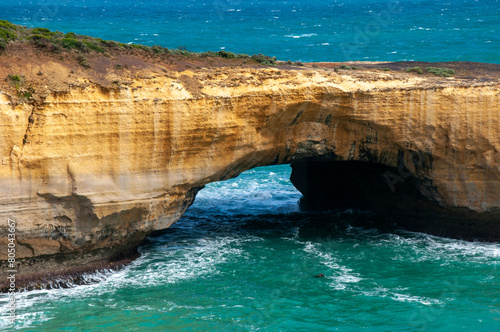 Fototapeta premium Port Campbell Australia, view of London bridge a natural arch. It is one of the 12 apostles on Great Ocean Road