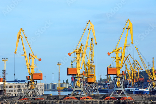 © Unkas Photo, Fototapeta premium Port cargo crane over blue sky background
