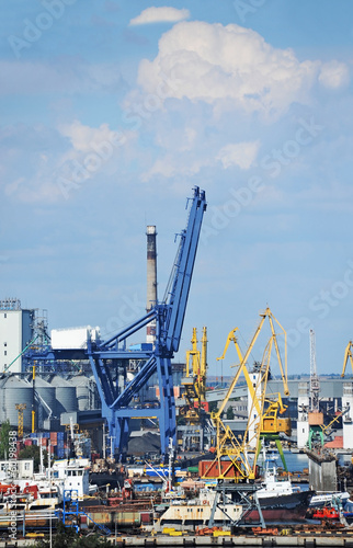 © Unkas Photo, Fototapeta premium Port cargo crane over blue sky background