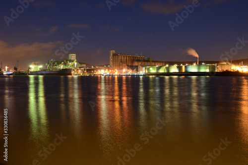 © S. Leitenberger, Naklejka premium Port de Rouen, chargement de blé sur un cargo la nuit