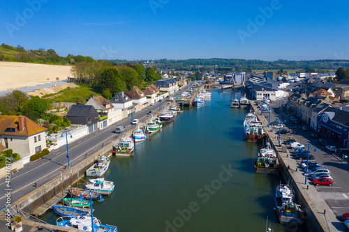 Obraz premium Port en Bessin,France, Calvados department, Port en Bessin, Aerial view of the city of Port-en-Bessin and its Harbor
