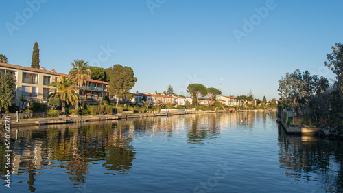 © Donatas, Fototapeta premium Port Grimaud house on river shore with yachts