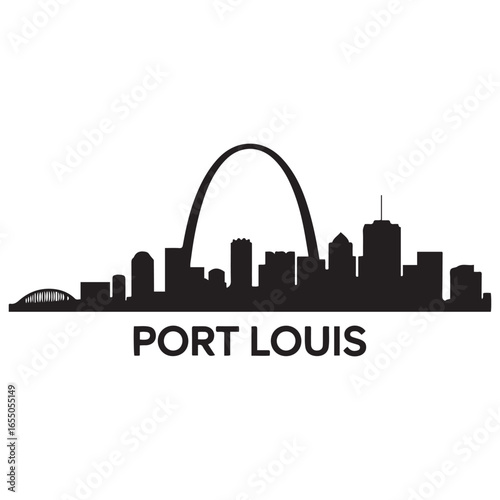 © Nargis, Naklejka premium Port Louis skyline silhouette. Vector illustration. Vector black silhouette. with white background