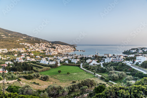 © Stamatios, Fototapeta premium Port of Batsi in Andros island a little before sunset, Cyclades, Greece