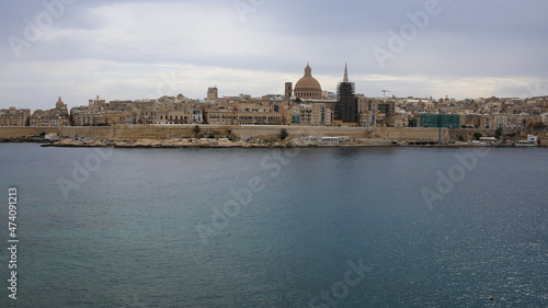 Fototapeta premium Port of Valletta with the St. Pauls Cathedral in a background