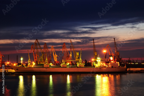 © soleg, Fototapeta premium Port warehouse with cargoes and containers