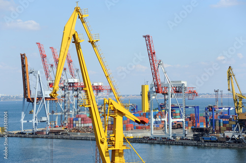 Fototapeta premium Port warehouse with cargoes and containers
