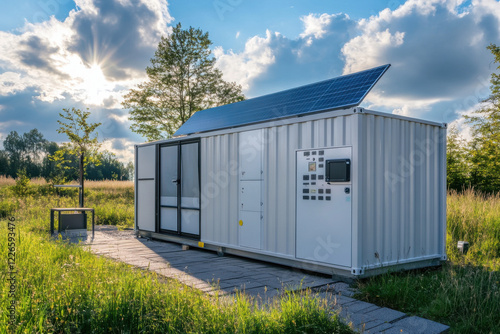 © Emanuel, Obraz premium Portable battery storage units used for off-grid renewable energy supply
