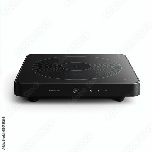 Fototapeta premium Portable induction cooktop with a glossy black surface, centered on a...