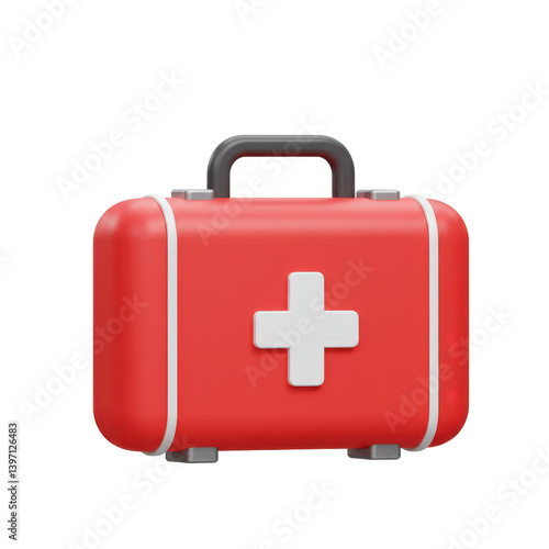 Obraz premium Portable Red First Aid Box with 3D Cross