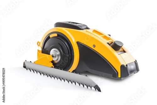Fototapeta premium Portable, yellow, and black circular saw with retractable blade. Compact,...