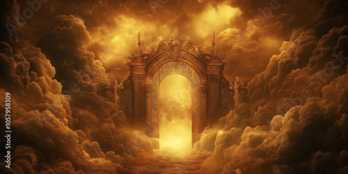 © Cedric, Fototapeta premium Portal in den Himmel umgeben von mystischen Wolken