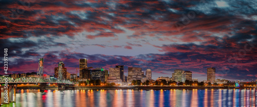 Fototapeta premium Portland, Oregon. City skyline at dusk, panoramic view