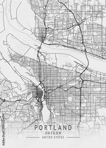 © Tien Stencil, Fototapeta premium Portland - Oregon - US Gray Map Art