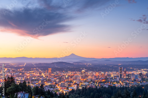 © Kovacs, Obraz premium Portland, Oregon, USA skyline at dawn with Mt. Hood 607