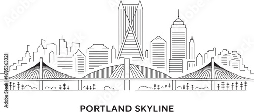 Fototapeta premium Portland Skyline Silhouette Vector Illustration with City Buildings and...
