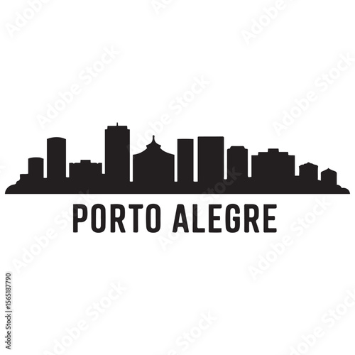 © firoz, Naklejka premium Porto Alegre skyline horizontal banner. Porto Alegre, Brazil. Vector template for your design. Vector black silhouette. with white background