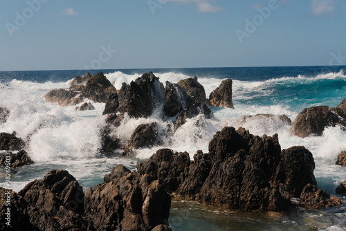 © Anastasia, Obraz premium Porto Moniz Natural Swimming Pools waves with rocks