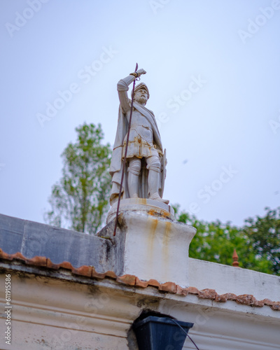 Fototapeta premium Porto, Portugal - 2023. Little statue on a roof.