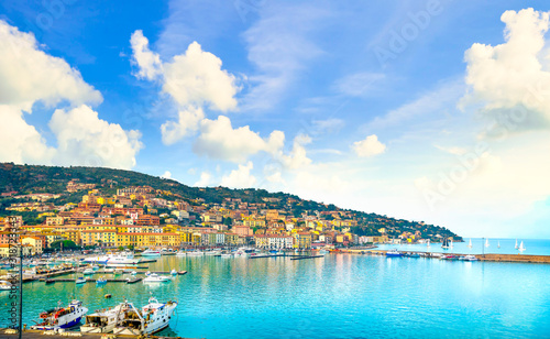 Fototapeta premium Porto Santo Stefano village, harbor view. Argentario, Tuscany, Italy