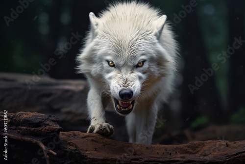 © Eyestetix Studio, Obraz premium Portrait a wolf on the forest AI Generative