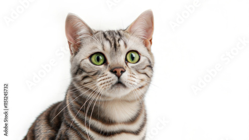 © Chenda, Obraz premium portrait American shorthair cat big eyes white background copy blank space paste