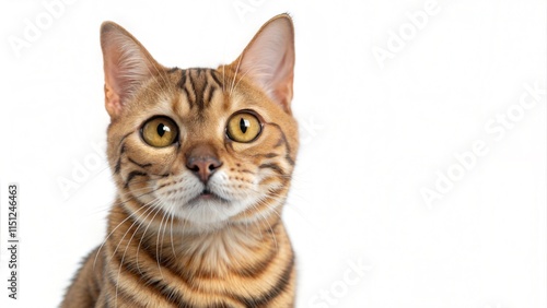 © Chenda, Obraz premium portrait beautiful cute ginger Bengal cat white background copy blank space paste