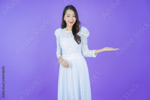 Naklejka premium Portrait beautiful young asian woman smile with action