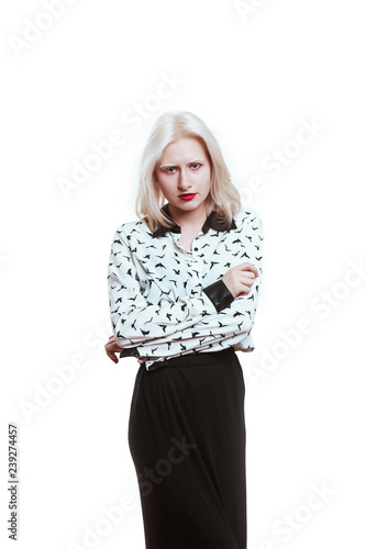 © ruslan1117, Fototapeta premium portrait blonde albino girl in studio on white background