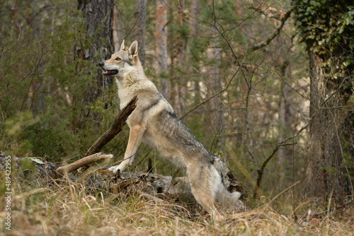 Fototapeta premium portrait chien loup tchécoslovaque dans la forêt