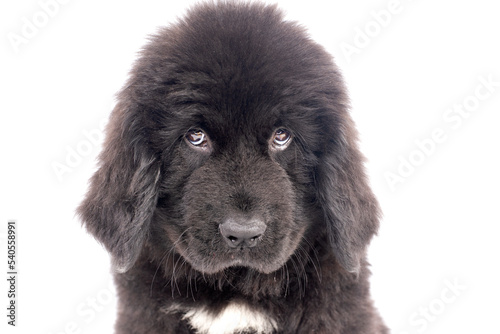 © nellas, Fototapeta premium Portrait cute black Newfoundland dog puppy on a white background