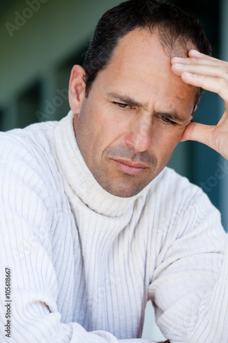 © plprod, Obraz premium portrait d'homme triste en pull blanc