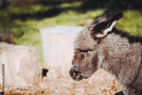 © PicsArt, Fototapeta premium Portrait d'un mignon petit anon gris dans un champ