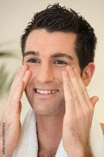 Fototapeta premium Portrait d'une homme s'appliquant de la crème
