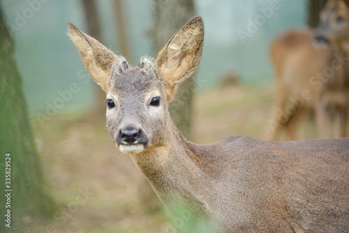 Fototapeta premium Portrait de petits chevreuils au milieu d'une foret en Europe durant l'été.