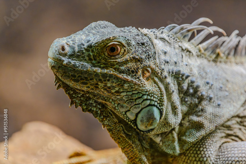 Fototapeta premium Portrait eines grünen Leguan im Tierpark