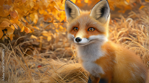 Fototapeta premium Portrait Fox Natural Habitat Golden Grass Backdrop High Detail Vivid Colors...